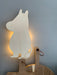 Moomin Wood Lamps. Fine wood lamp in Moomin silhouette, soft light in two positions, Practical pressure function, press the front of the lamp once for bright light, twice for soft light and one last time to turn off the lamp. Can be used as both a reading light and a night light. Built-in timer with 1 hour lighting. Can be connected to cord. 3 AA batteries, purchased separately.