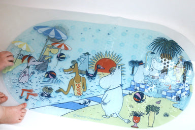 Colourful bath mat with Moomin motifs that makes bathing time fun and non-slip.The mat is easily placed at the bottom of the bathtub and sits in pl...
