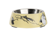 Pets food bowls are made of melamine with a removable stainless steel inner part.
