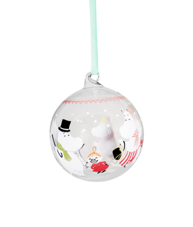 Create a cozy feeling of Christmas with these sparkling, Moomin themed glass balls. Each piece comes with a satin ribbon for hanging on the Christm...