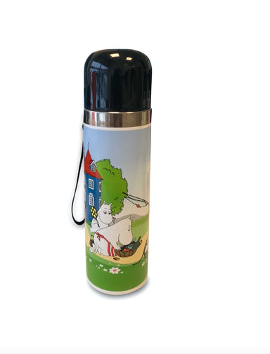 A cute thermos in the size 25cm x Ø 7cm, which holds 0,5 L. It is made of stainless steel and plastic, with high quality, and perfect to bring to t...
