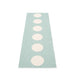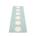 VERA was launched in august 2002. With confidence that this was a timeless, simple, playful, and contemporary pattern, 8 colors were released; Black, White, Red, Green, Blue, Nougat, Orange and Grey. 3 of which colors still today are the same as back then, Black, Red, and Orange. Since 2002 we have sold over 150.000 VERA rugs world-wide and still today, she brings a lot of joy to many homes around the world and still is our icon and bestseller. Non-absorbent hygienic rug that does not hold dust, making it ideal for people with allergies. Pappelina plastic rug VERA Pale Turquoise Vanilla