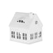 Village House Dormer House lets you know that this house is full, even to the top reaches. Imagine children's bedrooms or attic rumpus rooms in the upper level of this house with light spilling out showing that those inside are awake and well. Porcelain base holds light source which will glow through the many windows and door.