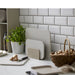 The chopping boards are made from a recyclable material that is particularly resistant to moisture, which makes them highly hygienic and easy to clean. The holder also helps to improve hygiene, as the chopping board can go directly in the holder from the dishwasher, even if it is damp. The grooves in the holders ensure air circulation between and under the chopping boards, so you can leave them to dry in the holder. The chopping boards are solid and 1 cm thick, making them less likely to twist out of shape. The surface is matte and thus more non-slip than a smooth surface, just as cut marks are less visible.
