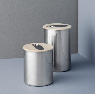Elegant and practical storage canisters for coffee and tea, made of stainless steel with a lid in rubber wood. The Scoop Coffee Canister also featu...