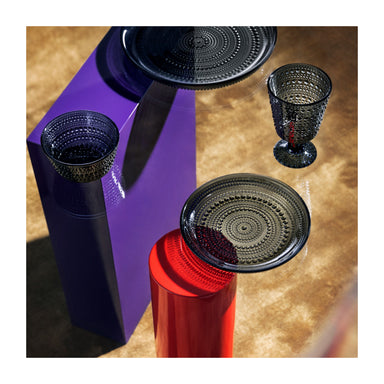 The groundbreaking raised droplet design of Kastehelmi came from legendary designer Oiva Toikka’s search to find a way to hide joint marks in glass...