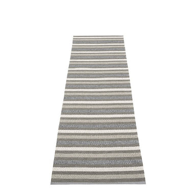 ASTAWARM GREYASTA, a rug that pays homage to the rich Swedish heritage of traditional rag rugs and the captivating styling of a classic glass veran...