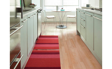The bright stripes that illuminate this tufted mat are more than a visual accent. Made of coarse PVC yarns and positioned deliberately at the mat’s...