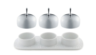 Three-section jam tray in porcelain with lids in 18/10 stainless steel mirror polished. Description For those who love their breakfast (and not on...