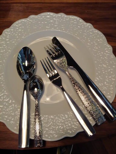 Cutlery/flatware set composed of one table spoon, one table fork, one table knife, one dessert fork, one tea spoon in 18/10 stainless steel mirror ...