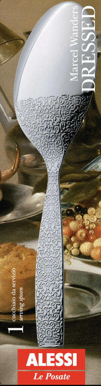Serving spoon in 18/10 stainless steel mirror polished with relief decoration. The table set Dressed was designed by Marcel Wanders. Traditionally,...