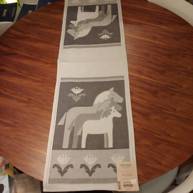 Tre Dalahästar 09 Table Runner, 14 x 47 inches is made in Sweden by Ekelund Weavers. These collections of textiles are some of the finest woven tab...