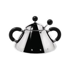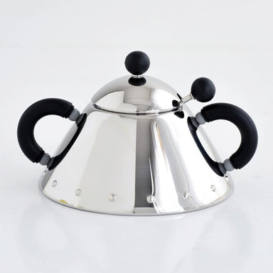 Sugar bowl with spoon in 18/10 stainless steel and PA, black. Description <<Graves'highly personal and easy to recognize formal style blends...