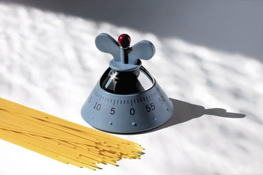 Kitchen timer in thermoplastic resin, light blue. Mechanical movement. Description Graves's personal formal language combines ideas taken from Eur...