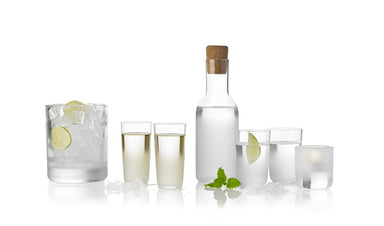 Frost glass carafe  Designer : Front Design family : CLASSIC Frosted glass SKU  Measurements  CM Ø:H:    CM Mouth-blown glass Frost captures the be...