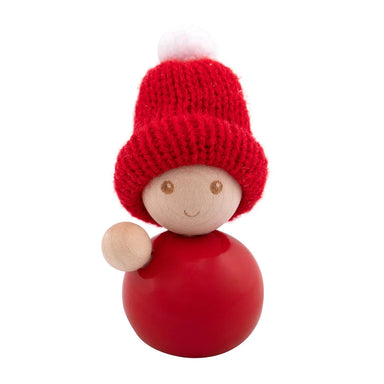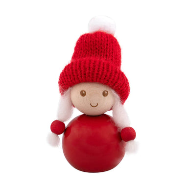 Elf Pipo is wearing a red beanie as they are planning for holiday celebrations. There is a white pom pom at the end of the beanie. Aarikka’s elves ...