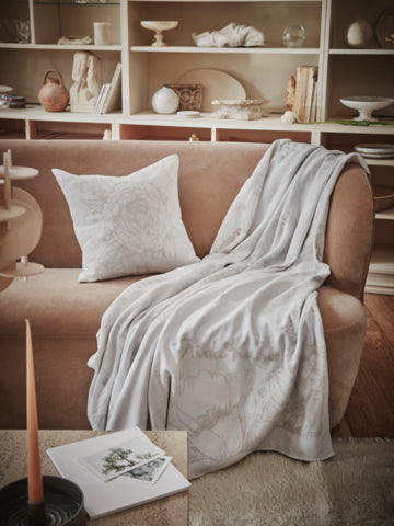 his plaid from Ekelund is warming and fits just as well on the sofa as on the bed, or outdoors in the furniture in the summer. Our roughened plaids...