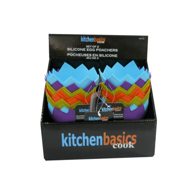 Spray these sets of 2 assorted colour Kitchen Basics Silicone Egg Poachers with pam, oil or butter then crack an egg and let it sit in the poacher ...