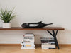 A prominent feature of the Eames collection was a huge wooden whale over two metres in length, an anonymous work of North American folk art. Charles and Ray Eames were exceptionally fond of the painted object: it occupied a permanent place in the Eames Office and was also used in photo shoots – such as the first photos of the Lounge Chair. The smaller-scale reproduction of the Eames House Whale by Vitra is crafted from ash wood and painted by hand.