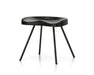 The seat of Tabouret N° 307 (1951) by Jean Prouvé has the shape of a tractor saddle and is crafted from solid oak in the version produced by Vitra.