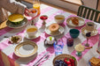 Finnish design duo Helorinne and Kallio designed the Tuokio pattern for the 24h series. The pattern was inspired by Arabia's decorative traditions stretching back over 140 years, strong ceramic expertise and an ability to apply knowledge while respecting the old and simultaneously creating something new. The design of the Tuokio pattern was based on the clear lines of the 24h series designed by Heikki Orvola. The 24h series was named after its purpose: 24h – tableware pieces for every hour of the day. The word 'tuokio' ('moment' in Finnish) describes the intensity of time – a special moment where memories are created. It feels hand-painted, with a rhythm to the pattern where the brush strokes – the feel of the artist's work – are strongly present. The end result is an interesting and modern pattern that fits well within today's diverse place settings.