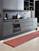 EFFI, a simple yet elegant rug without any fuss. By using our unique Pappelina-weaving technique, a 3-color blend and a hemmed edge that seals the deal, this design has become a favorite in our rug collection and it's easy to understand why. With its modern simplicity, it fits into most interior styles and provides a soft and comfortable surface to walk on. Easy to care for and clean with only using water. Machine washable. Pappelina plastic rug EFFI Dark Red Coral Red Vanilla