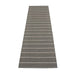 CARL, a true classic with simple stripes but an innovating two-in-on effect with two different colors on each side, giving you the possibility to easily change color an the ambiance of a room. Thanks to the material's durability, the rug has a long lifespan, which gives a low environmental impact. Pappelina plastic rug CARL Black Charcoal