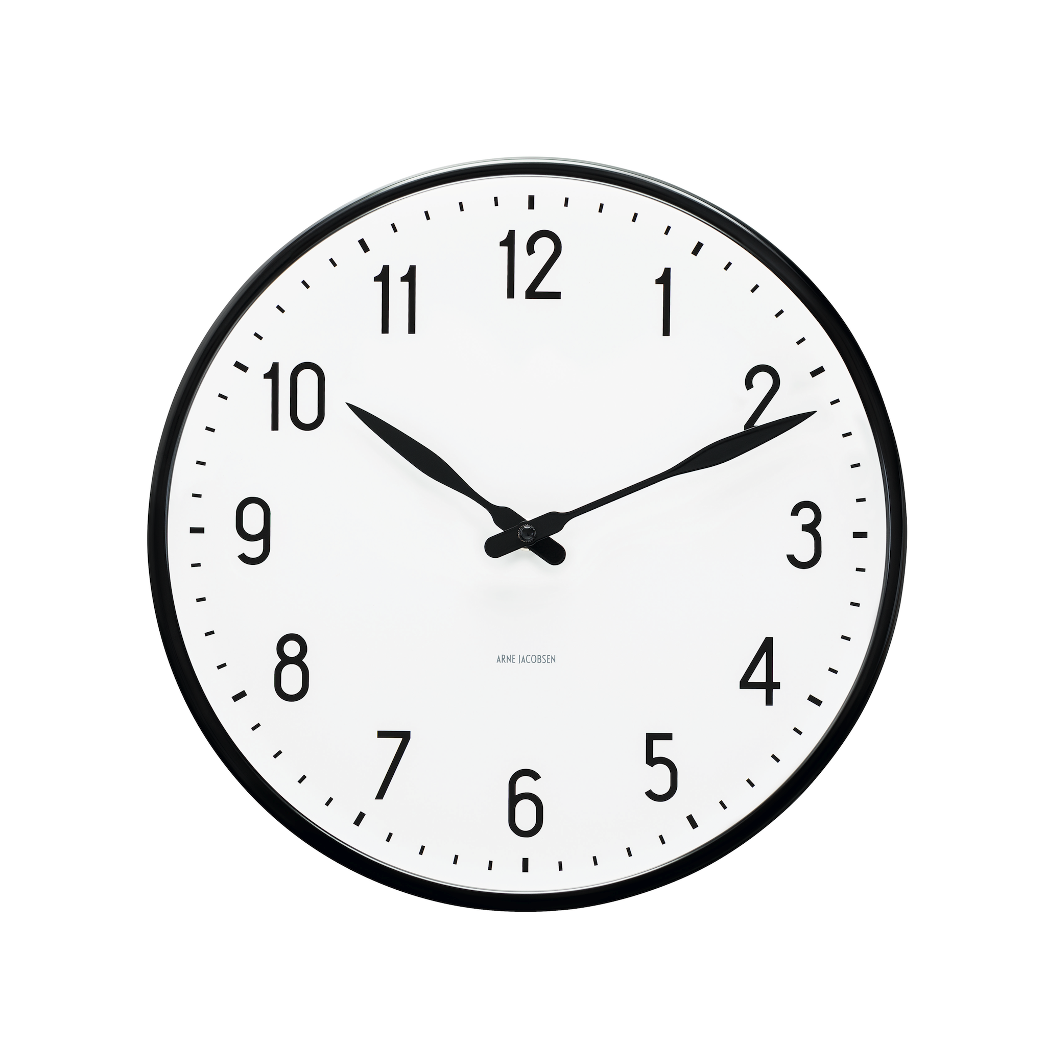 Take time out for the latest interior design trends. Arne Jacobsen's Station Clock was originally designed for the electrical manufacturer LK in 1941. The original design for this iconic classic has now been recreated and transforms an anonymous white wall into a distinctive design statement. The graphic design is emphasised by a top ring in black aluminium. Available in three sizes. The smallest is shown here. A great gift idea that can be handed down through the generations.