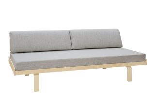 Day Bed 710 models the strength, simplicity, and versatility of Aalto’s L-leg family. The bentwood legs and slatted frame combine to provide a sturdy, lightweight structure that can be moved as necessary. Made of solid birch, the Day Bed 710 invites both sitting and reclining. Beyond the mattress, the day bed can also be accessorised with cushions; both items come with removable covers and are available in a variety of colours and textiles.