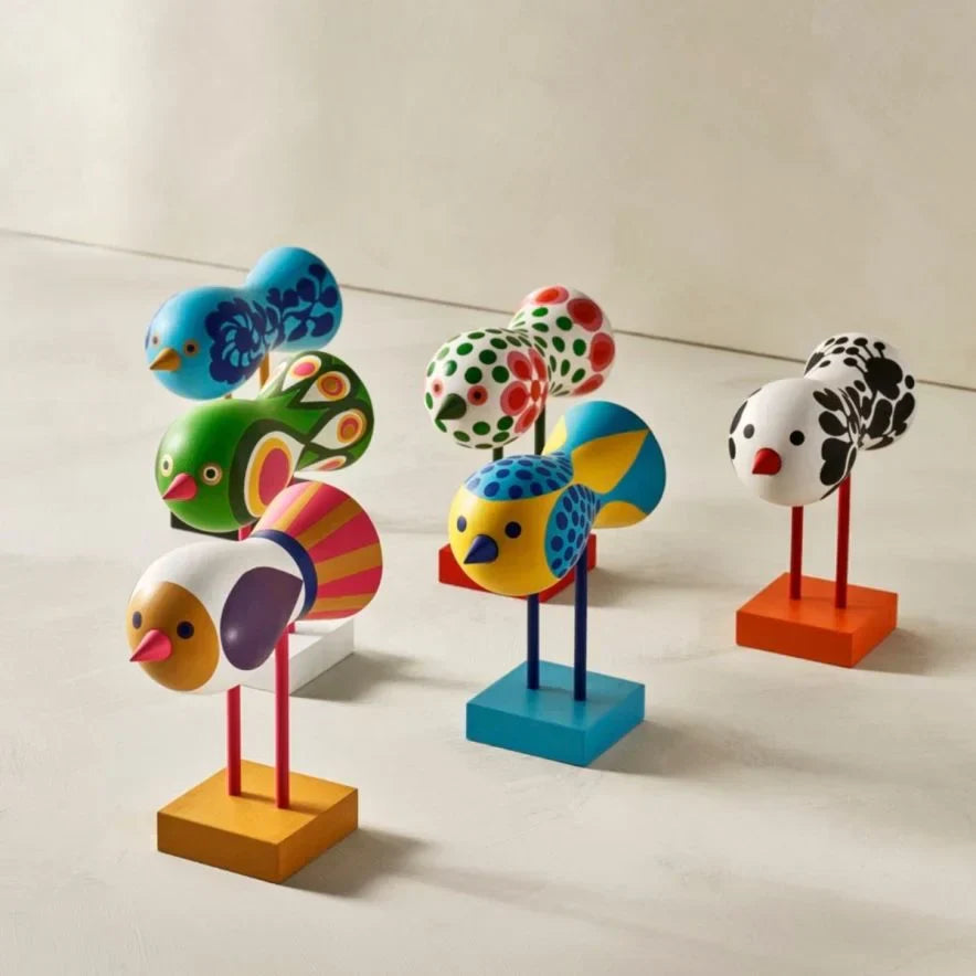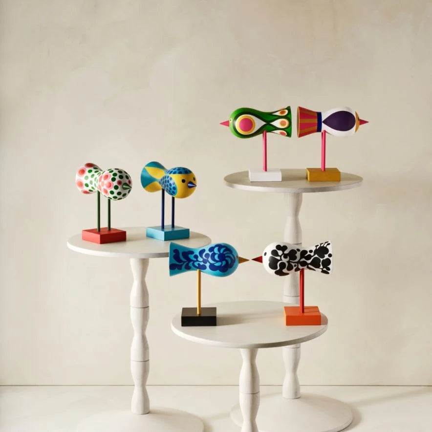 Discover the unique collection between Lisa Larsson and Design House Stockholm! A treasure has been hidden since 1967 at the studio of the famous Swedish ceramist Lisa Larson outside Stockholm. Her colourful flock of birds was born back in the vibrant and vibrant 60s, an era when lively music exploded and the young Flower Power generation conquered the scene. Lisa Larson's birds are now flying freely. Lisa Larson's birds are almost like doves of peace, a reminder of a time when the young generation protested against war and dreamed of a new society. The intense colors, together with the music, were a true celebration of life. Colors in inflated patterns that really give power to the soul. The richly decorated flock of birds has now left the closet to fly freely, a celebration of life and a testimony to a time of hope and happiness.