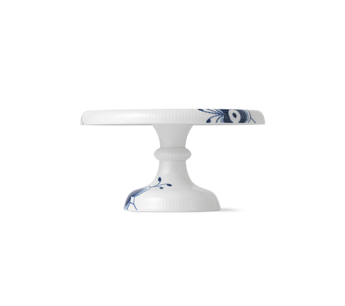 The Blue Fluted Mega dish on stand comes in two sizes, and the smaller cake dish features a slightly higher foot for elevated servings. The cake dish is adorned with the hand-painted Blue Fluted Mega decoration and is a beautiful center piece for any table or for servings of sweet treats.