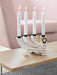 4-armed candlestick where you decide the shape yourself. Use it fully extended, partially folded or fully folded! Then turn the screw in the middle. Designed by Jonas Grundell for Design House Stockholm. Also available as a seven-branched candlestick.