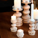 Height: 15 cm, materials: wood and metal. Comes with a dinner candle (24 cm).