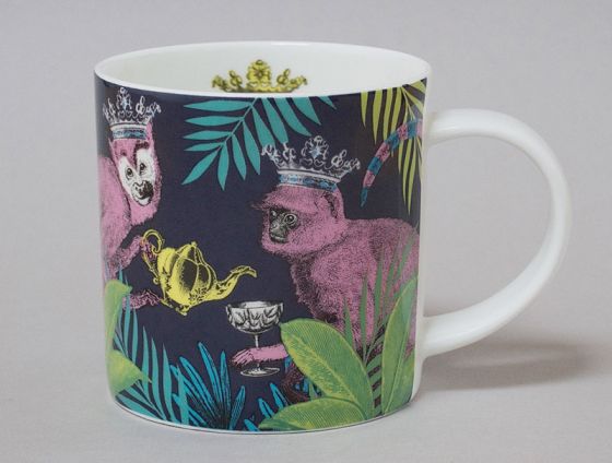 This design was inspired by the art of découpage and features monkeys taking tea a whimsical jungle setting.