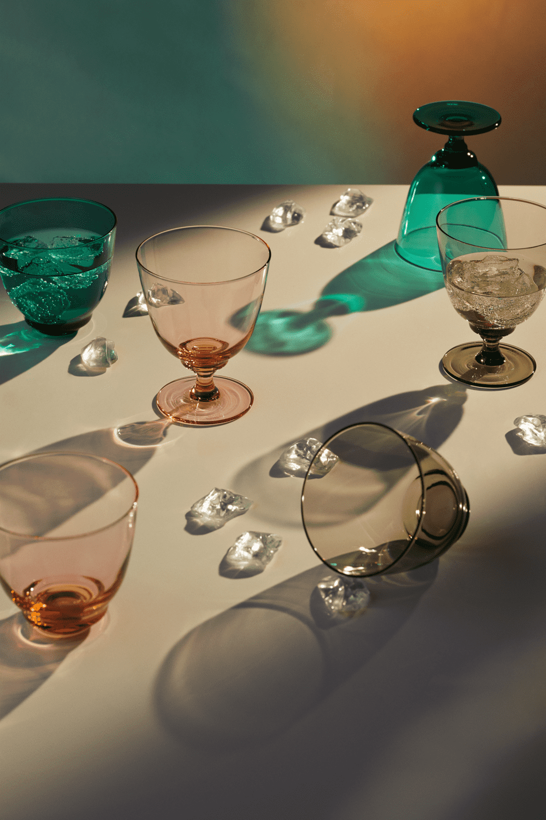Brighten up your day with a world of glass in beautiful colours. The beautiful colours of the Flow Holmegaard series instantly livens up the table setting and reinvigorates the senses. The glasses have a classic shape and are designed with a discreet wave pattern on the bottom, inspired by water ripples. The 35-cl Flow tumbler in Smoke has a nice weight at the bottom and fits well in your hand. The flame-polished rim makes the glass sturdy and comfortable to drink from, and the mouth-blown tumbler is stackable. This makes the glass both classic and practical. All the glasses in the Flow series are mouth-blown, so that each one is completely unique. The Smoke colour is an elegant, classic glass colour that goes with any table setting and balances the more colourful glasses. Find your favourite colour in the Flow series or mix several different colours in the table setting to create your very own style full of personality. Dishwasher-safe at max. 55 degrees.