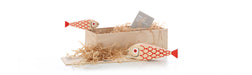 Packaging: high-quality wooden gift box with printed label, brochure included. Set contains a small fish and a large fish.