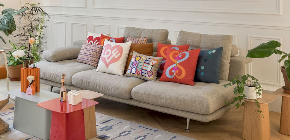 The Graphic Print Pillows bring a number of these designs to life again: featuring abstract graphics and expressive figurative motifs, they create striking accents and are suited as decorative accessories for diverse interior styles.
