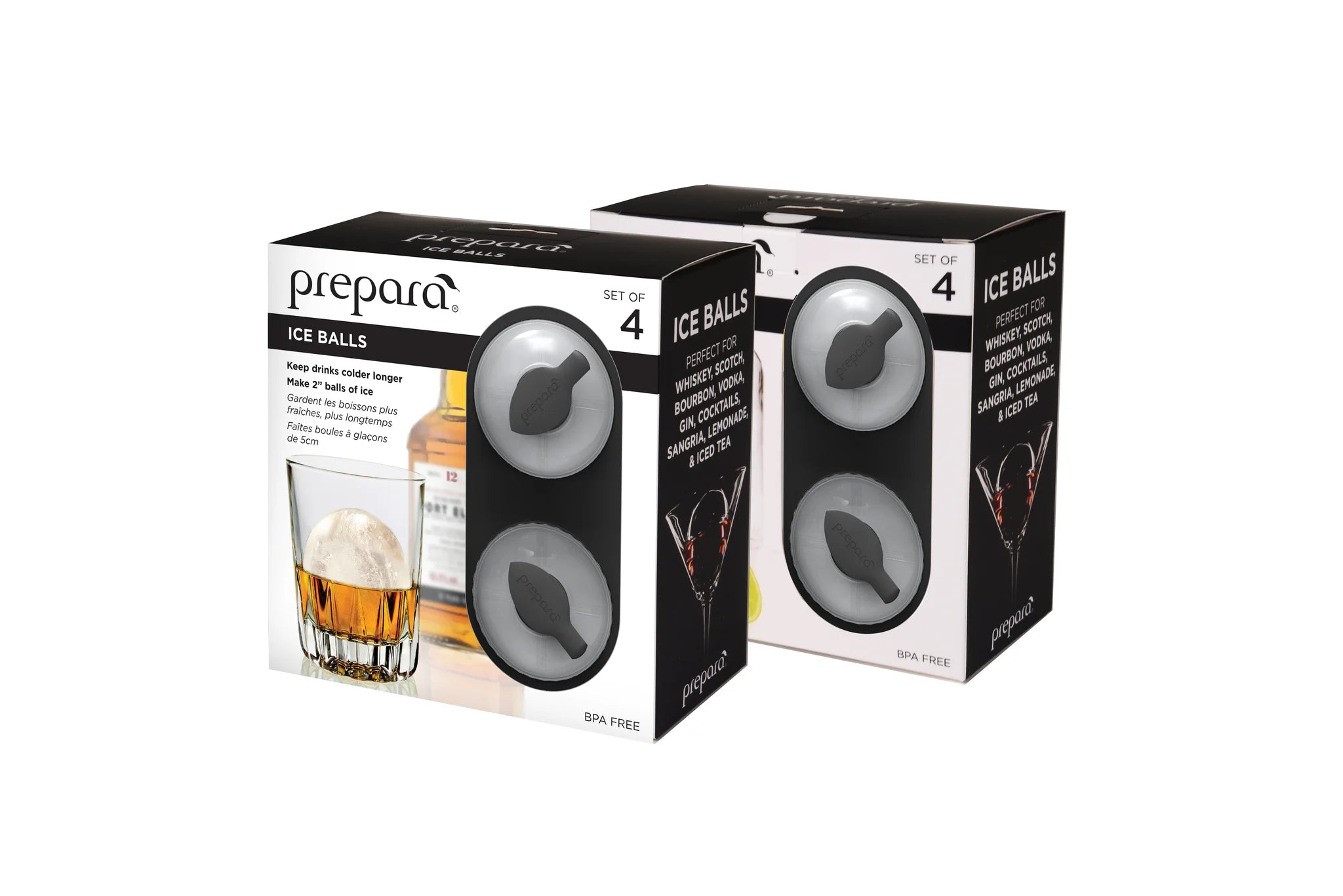 Ice Balls 4/ST Gift Box Whiskey packaging Boules de Glacon 4/ST coffret-cadeau Whisky emballage A must-have for fun lovers of all ages! Pack them with mint leaves, basil, fruits and more. Fill them with juice, lemon or lime segments, and close the slicone cap to store anywhere in your freezer.