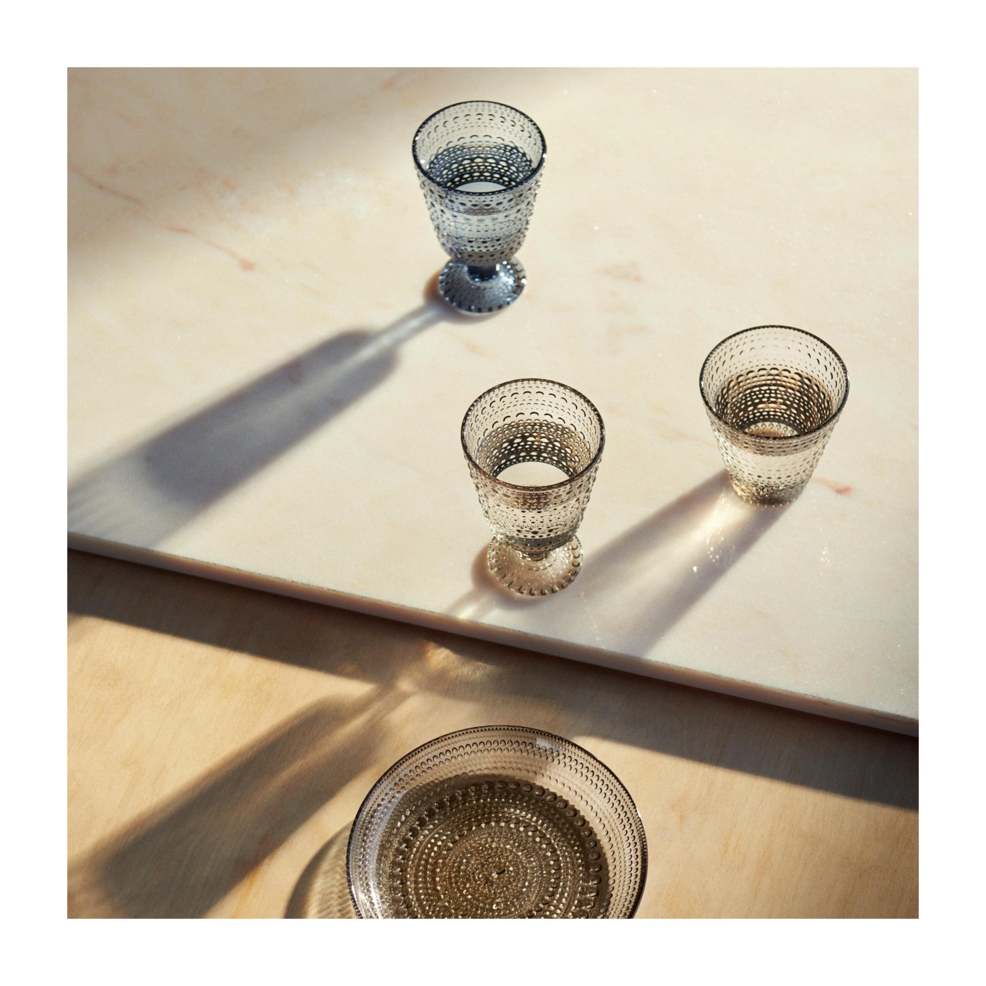 Finnish design pioneer Oiva Toikka was searching for a way to hide joint marks in glass when he invented the groundbreaking Kastehelmi design. Inspired by nature, Kastehelmi (Finnish for “dewdrop”) features rings of raised glass droplets that resemble strings of dewdrops glistening under the morning sun. Kastehelmi (“dewdrop” in Finnish) plays with light, bringing out the reflective beauty of the glass. Iittala’s beloved Kastehelmi collection offers a wide range of versatile pieces that are both functional and decorative. Kastehelmi tumbler is a classic example of Finnish glassware. Delicate yet durable drinkware that suits any table. The 2 pc glassware set makes a great gift.