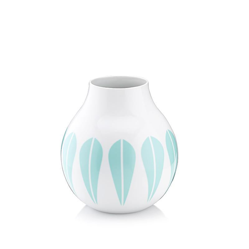 Lotus I Vase 10.5cm White porcelain vase with Mint Green lotus pattern