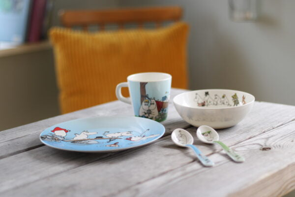 The author and artist Tove Jansson loved the sea and nature. Almost all of her stories and illustrations take place in nature. The author and artist Tove Jansson loved the sea and nature. Many of her stories and illustrations reflect the beautiful archipelagos of the Baltic Sea. The "archipelago" series contains a bowl, flat plate, nice mug and 2-pack spoons with motifs with the Moomin family bathing in clean water! The Series includes a bowl, flat plate, nice mug and one-pack spoons with different beautiful motifs! The products are sold without packaging and are ideal for children's everyday life, and wonderful for picnics or parties.