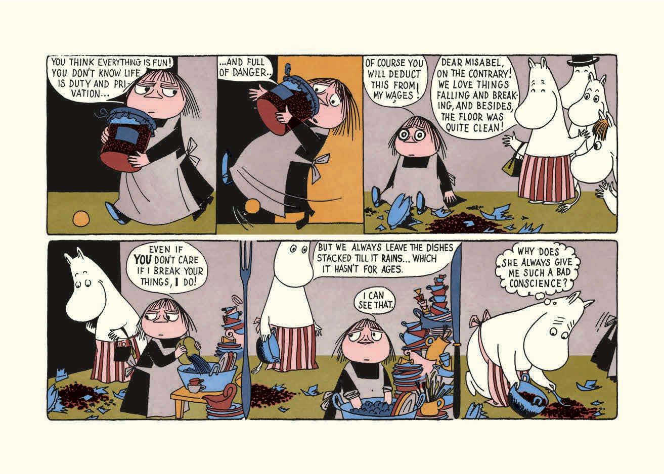A housekeeping and mother-craft expert named Mrs. Fillyjonk moves in next door to the Moomins. Seeing the state of the Moomin house, she takes action, shaming them into hiring a maid. When Misabel the maidarrives, it's immediately clear she needs a little cheering up, and since Mrs. Fillyjonk has mysteriously disappeared, the Moomins set about teaching her how to enjoy life. Lessons and poignant reminders of the importance of simple pleasures abound in Moominmamma's Maid, the classic tale from Tove Jansson.