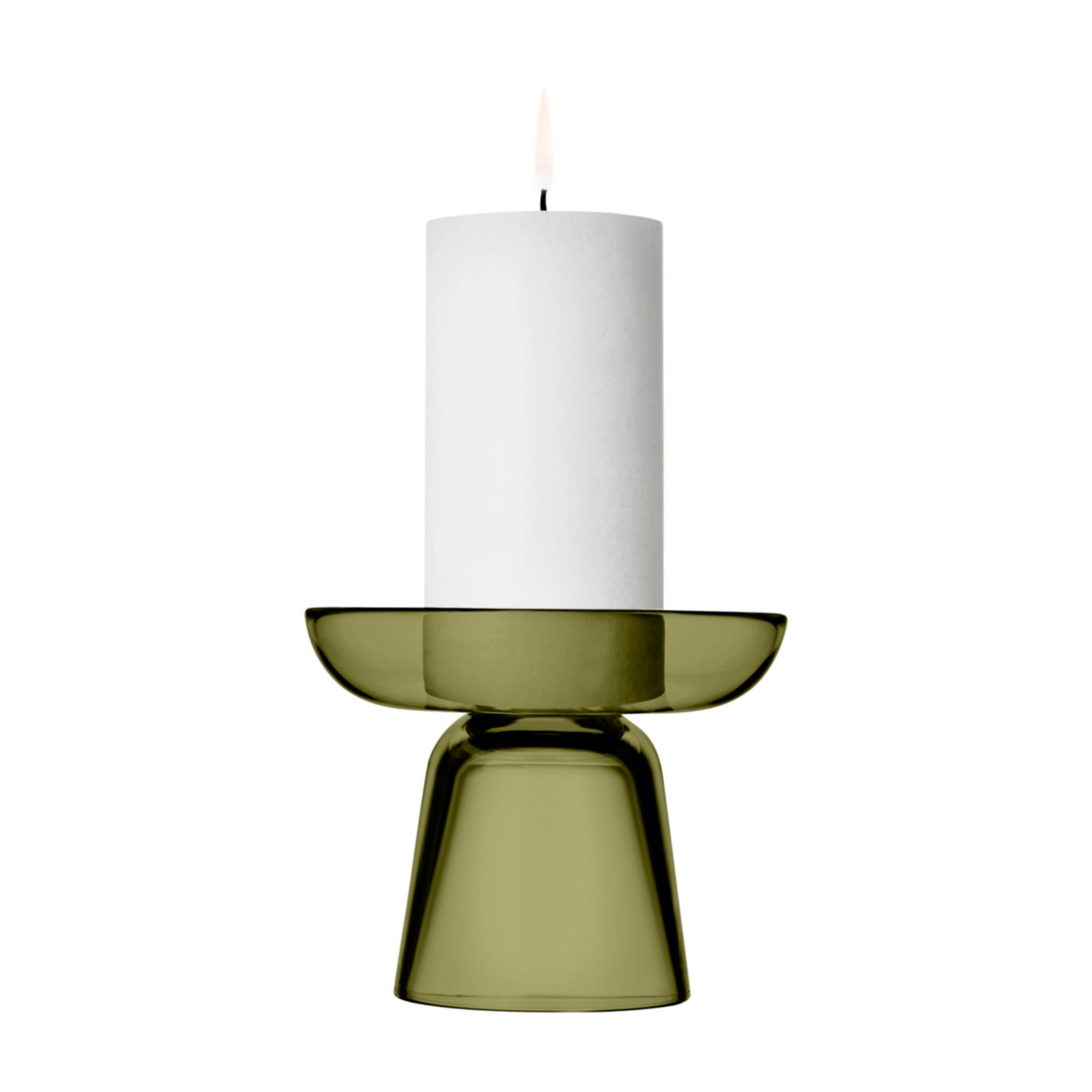 An unusually shaped table with ‘swollen’ legs inspired Matti Klenell’s Nappula. The designer translated the inspiration into Nappula’s signature silhouette; a tall, elegant stem standing on a solid, round base. Now a modern Nordic design classic, Nappula combines Klenell’s love of classic and contemporary details. The Nappula pillar candleholder is a fun play on the signature silhouette with its flowing curved design. Mouthblown glass in fresh moss green enhances its striking impact. The rounded top softly contours to the pillar candle so that it reflects a gentle light that brings warm ambience to any interior. Stunning alone or grouped in a collection. Great gift idea. Pillar candle recommended.