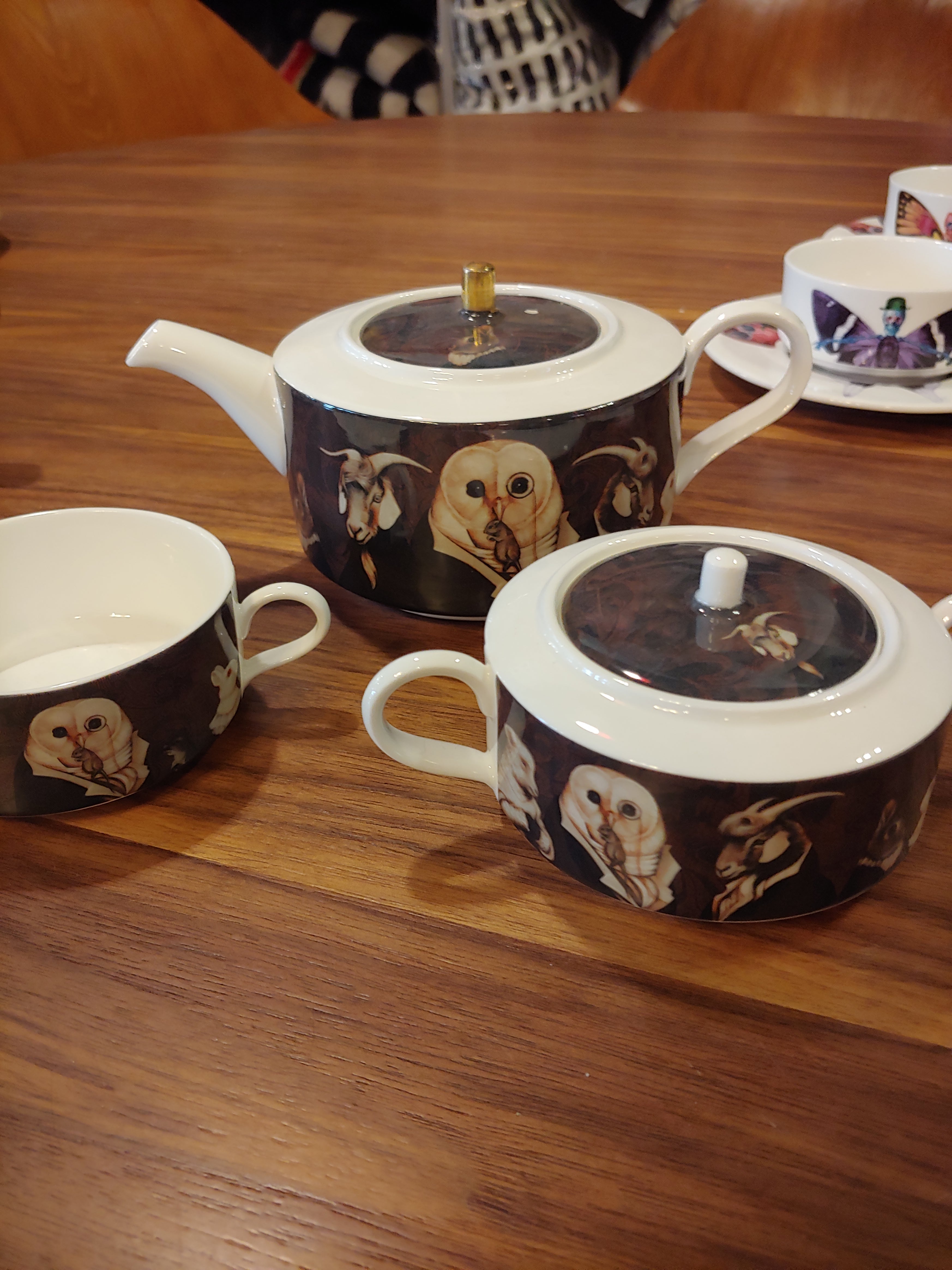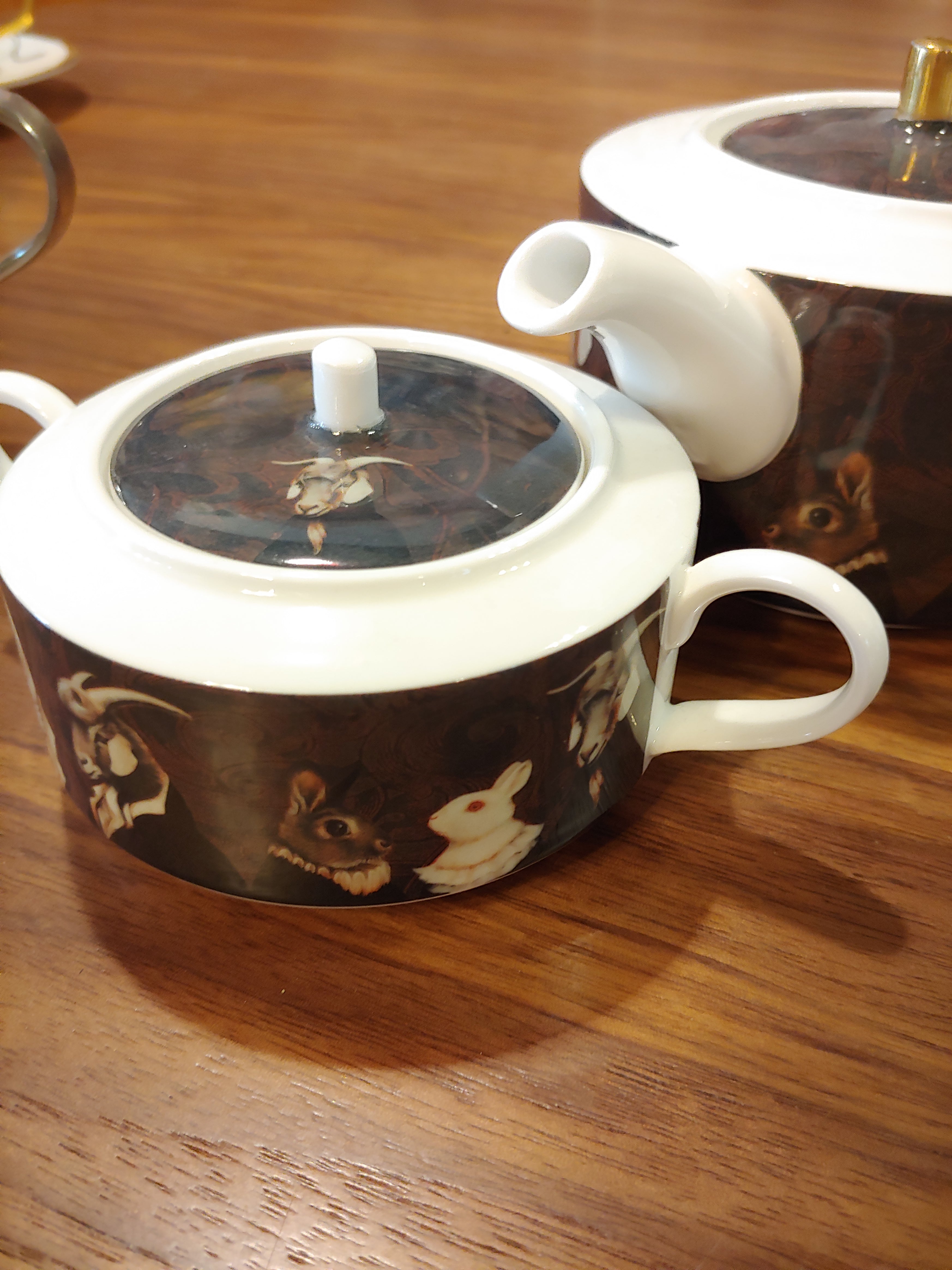 Evoking the spirit of Alice in Wonderland. This set of limited edition tea service with animals dressed in best outfits for tea.