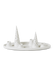 The beautiful Nobili Christmas series is designed to bring the Christmas spirit into the living rooms in a modern and elegant way. This year, the series Nobili series is joined by a seasonal candleholder for four lights. The four candleholders have different heights on the oval curved base. This creates variety and is eye-catching when the lights are lit. On the candleholder there are two small Christmas trees which will add decoration to the surface. The small trees with the many hand carved small holes are exclusively for decoration, and not for candle lights. The oval shape of the Christmas candleholder fits beautifully on the center of a table or on the windowsill and is both decorative and sculptural. You can create a personal tableau along with the other elements of the Nobili series or let the candleholder decorate on its own. Produced in bone china with glossy snow white or olive-green icing, and all Christmas trees have hand-carved holes of different sizes. Designed by design duo R7B - Mette Bache and Barbara Bendix Becker