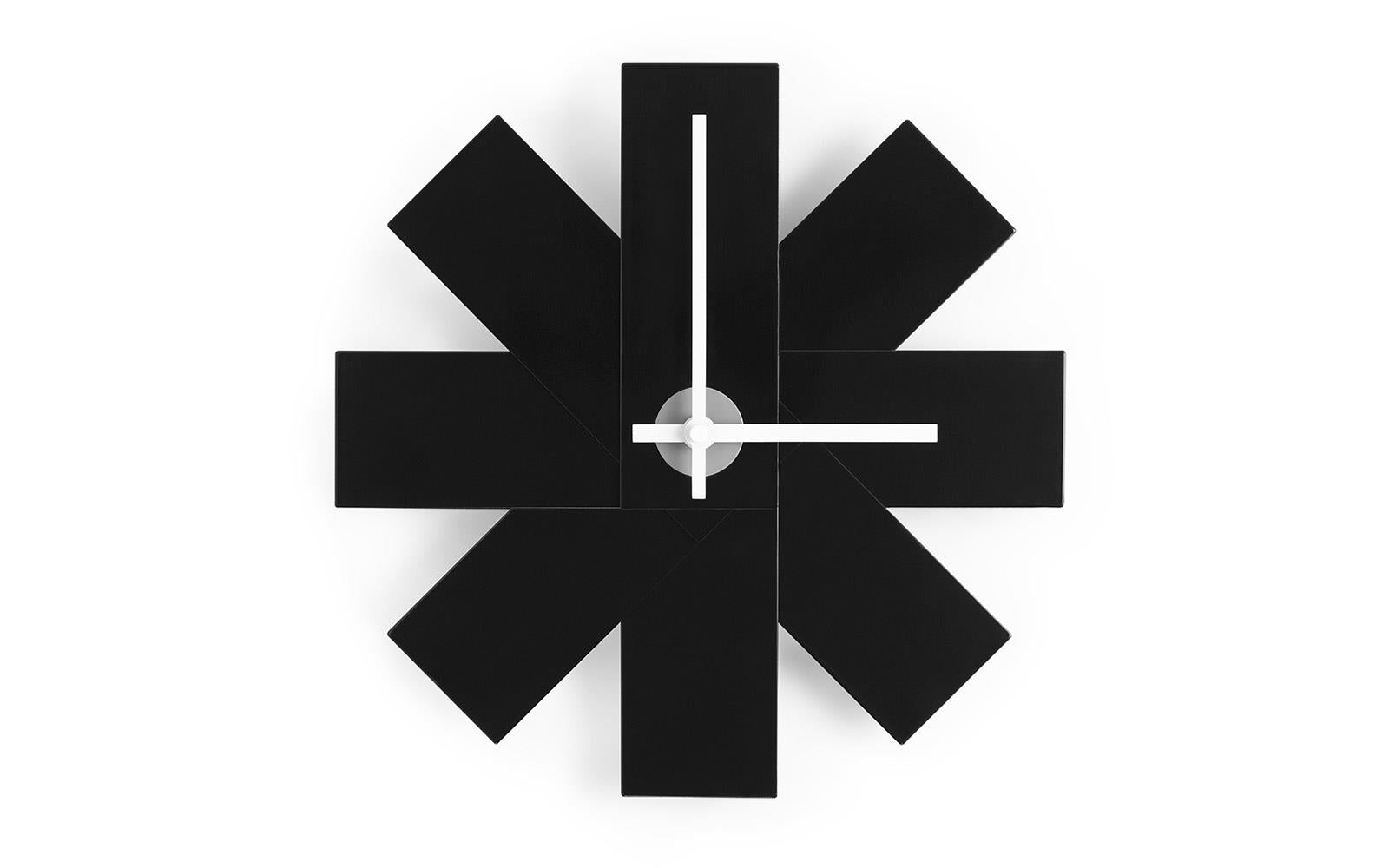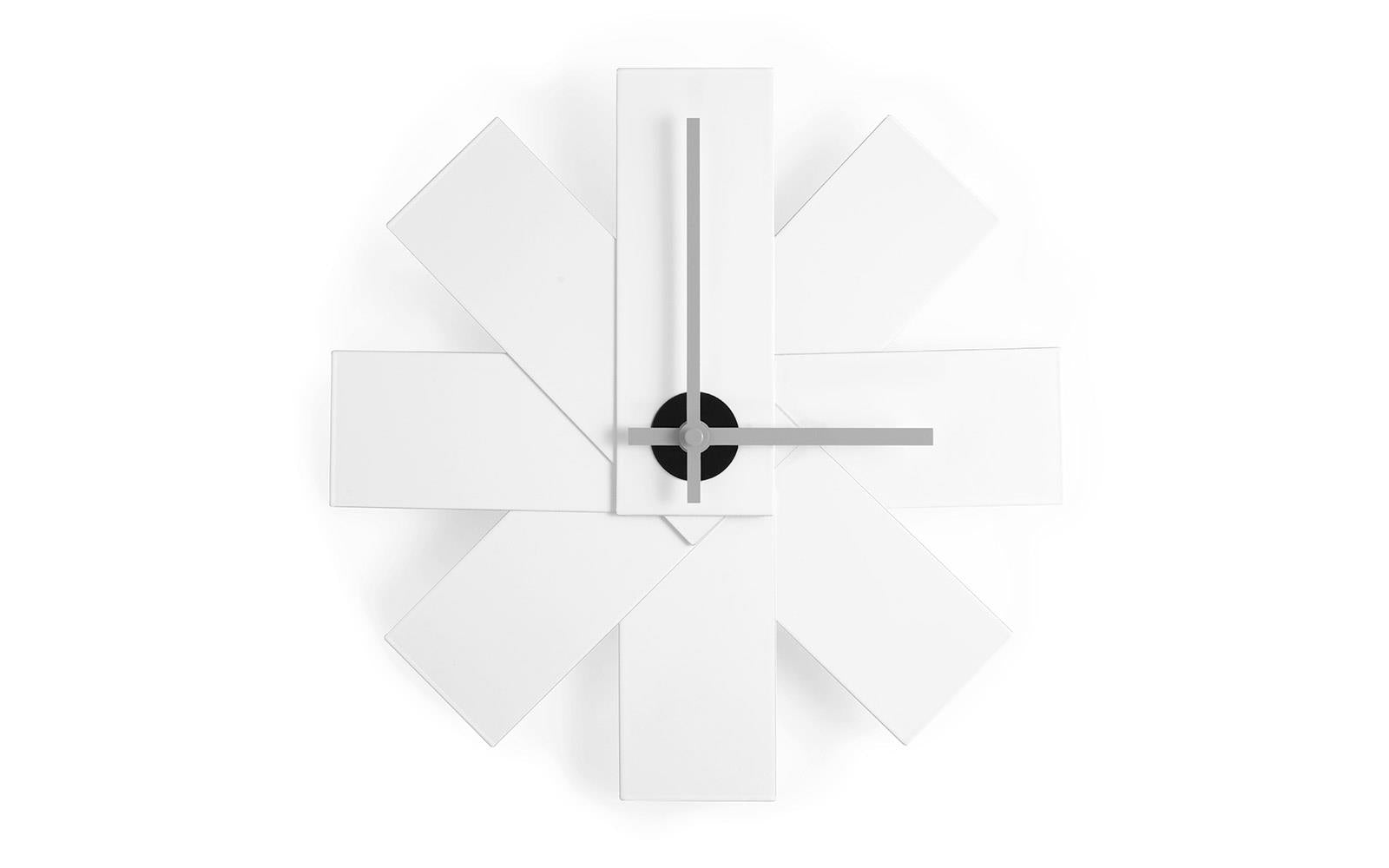 Watch Me is a modern wall clock that distinguishes itself with its stylized design. The design is inspired by a color swatch and consists of eight rectangles that are folded out like a fan, forming the face of the clock. The simple but clever use of rectangles creates the clock's stringent graphic expression, while indicating the passage of time. Watch Me is not about telling you the exact time, it is more about an idea of time.