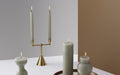 A shiny, golden surface and rounded design details give the Pirouette candle holders a refined appearance, worthy of any dining table. The series includes candle holders for 1, 2 or 4 candles, and a snuffer. Made of brass-plated welded steel.