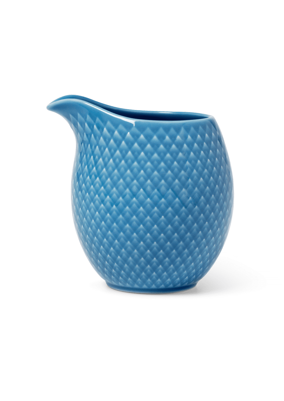 Decorative milk jug in blue porcelain from Lyngby Porcelain. The milk jug is made of glossy glazed porcelain with clear reference to the Rhombe series, which makes the milk jug stylish and classic. The milk jug has a characteristic curved shape and with its classic spout it is easy to pour off. The pattern comes from Lyngby Porcelain's archives, and in this version you get added elegance and sophistication to the stylish milk jug. With its clear clean lines, the Rhombe color milk jug is ideal for a beautiful and colorful table setting.