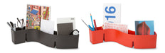 The serpentine shape of the S-Tidy organiser by Michel Charlot prevents it from tipping over, enabling safe storage of even taller objects such as tablets. S-Tidy is made of robust plastic and comes in a choice of colours.