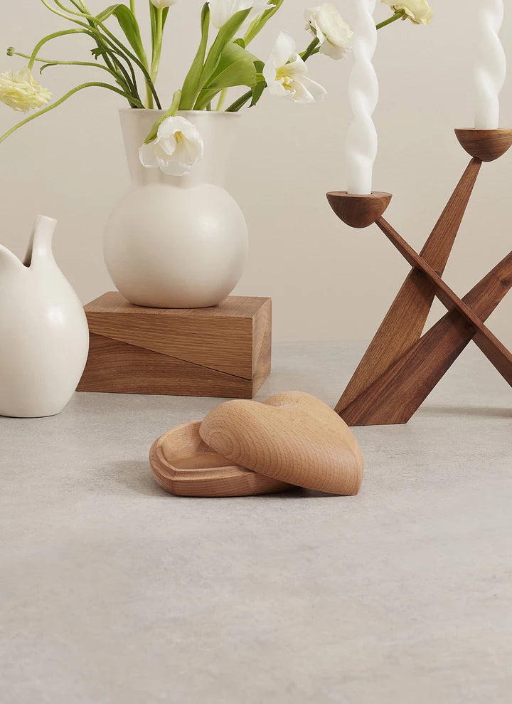 The Heart Bowl is a handmade bowl in beech, shaped by a love of great design. The design duo mencke&vagnby has created a bowl that is both functional and a joy to look at. Lift the lid and store whatever little treasures you like in the bowl’s cavity. Put the lid back on and see how two half hearts become one. A beautiful bowl that reminds you of the greatest thing of all: Love..